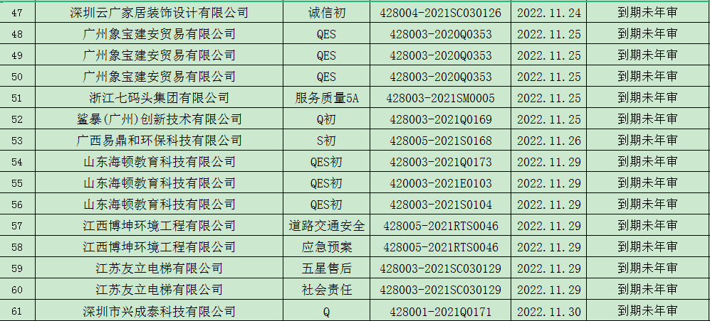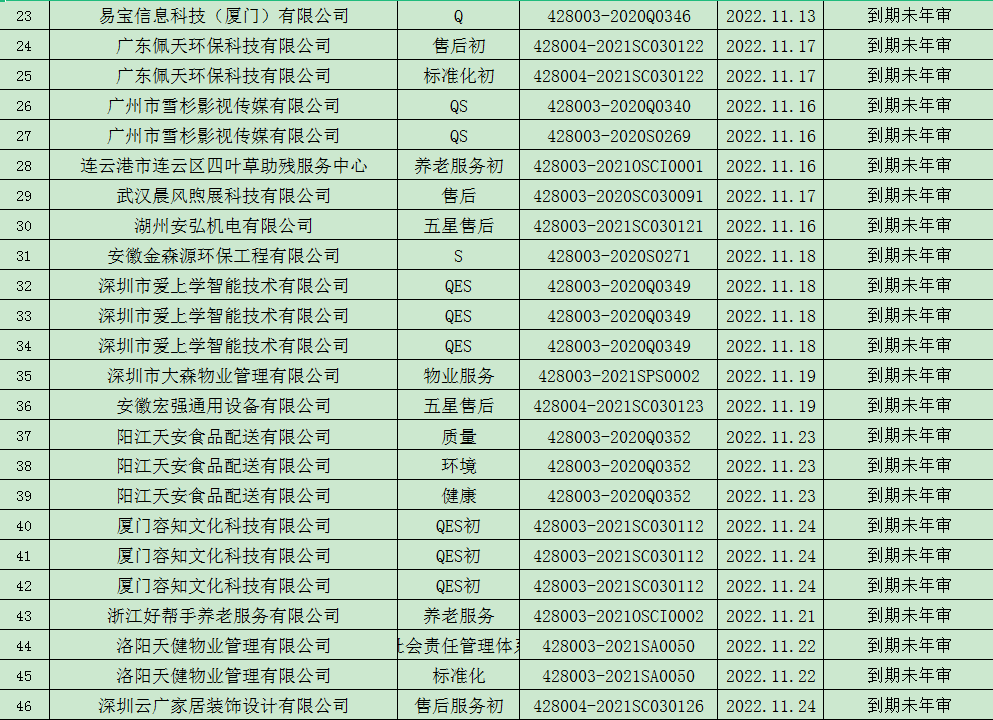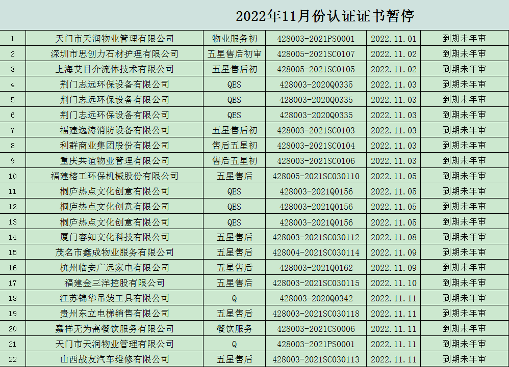 您的位置: 首頁 新聞中心 公司公告 暫停公告 2022年11月份認證證書暫停名單