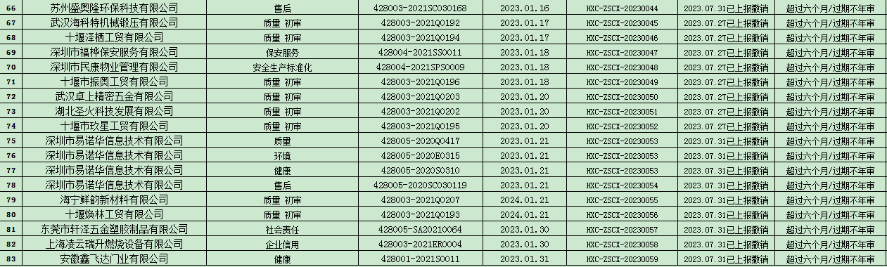 您的位置: 首頁 新聞中心 公司公告 撤銷公告 2023年07月份認證證書撤銷名單