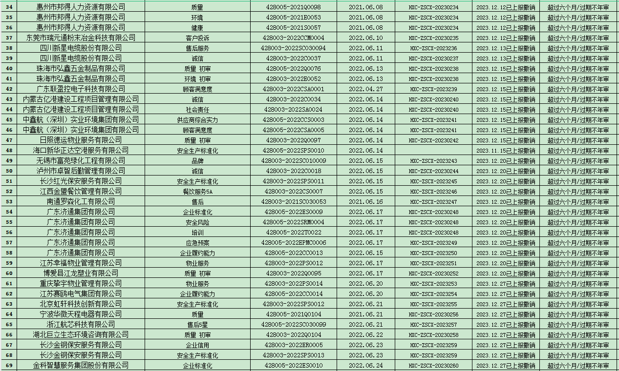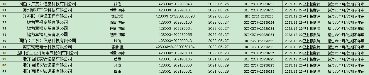 您的位置: 首頁 新聞中心 公司公告 撤銷公告 2023年12月份認證證書撤銷名單